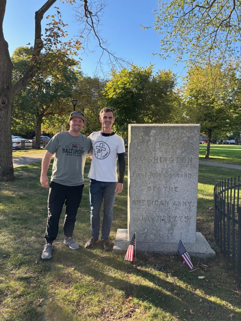 Then, before we left Cambridge to take Alex to the airport, we swung by the spot where George Washington was sworn in as Commander and Chief of the newly formed US Army 250 years ago, and we prayed and asked God to bring thousands of spiritual soldiers onto the mission/battlefield to win souls and take ground from the enemy. Not easy to see the inscription on the monument, so you may have to zoom in: