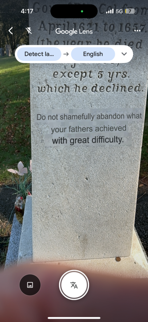 It was at his gravesite in April of 2022, that the Lord spoke to me and told me “I’m bringing revival to America.” Which He TOTALLY has. I went there again this time to pray and ask God for another Word, and it came through a message written in Latin on his gravestone: