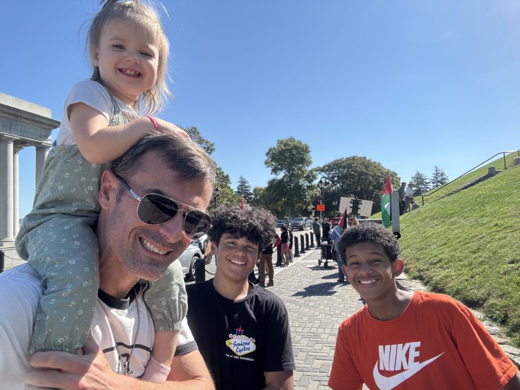 The one on the left even preached a little bit. You can also see the Pro Palestine protestors in the background. We got to minister to them also.
