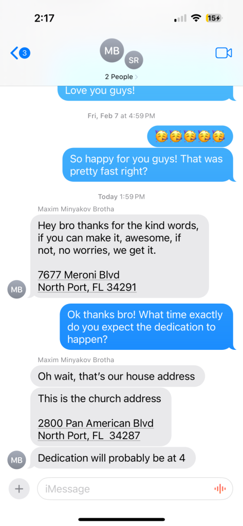 The next day Sofiya and I were invited to her sister and brother in laws baby dedication. He sent me the address and I was stunned. It was literally at the exact same intersection that Ken Malone mentioned in his 2023 message, which was a prophetic confirmation of how the work that is done in Key West will affect all of America. You’ve gotta watch this 5 minute clip: