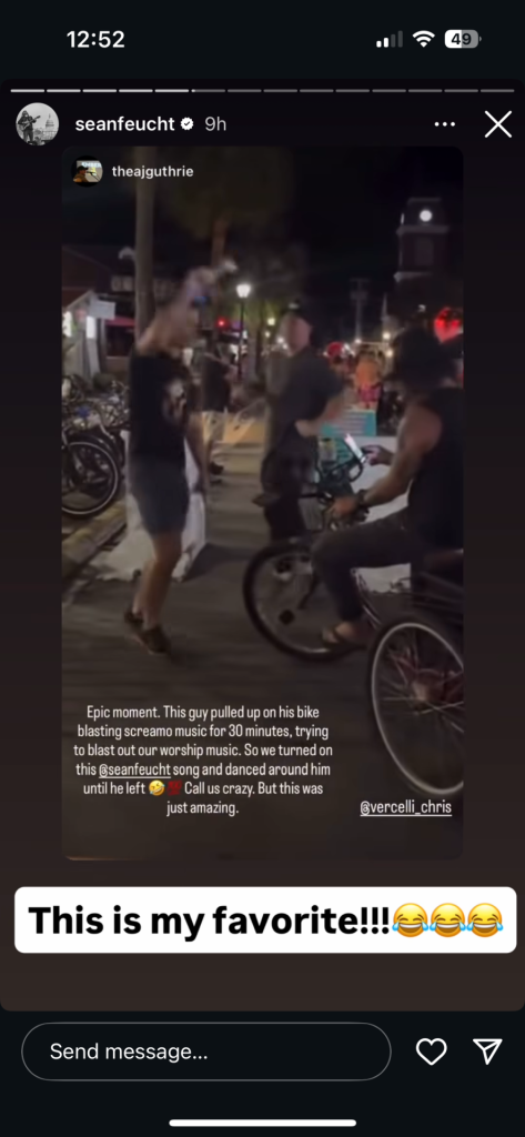 Pretty cool too, that after we posted the video and tagged Sean Feucht, he reposted it with this statement- “this is my favorite!”