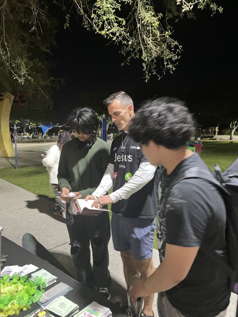 Leo is in his early 20’s, and he learned about Jesus through his mother. Sadly though, he had some church hurt, some life hurt, and a VERY strained relationship with his father. All this made him skeptical of what his mom taught him. When he walked by, Thom asked him “do you want to talk about Jesus?” and he came back and talked to me for about 20 minutes.