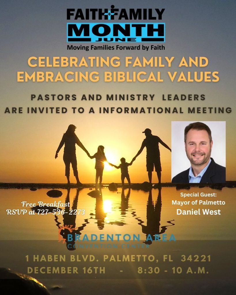 I shared during the meeting that I saw this as an incredible evangelism opportunity because it would allow us to easily share the gospel through explaining the Biblical definition of family and marriage and how they are parables for our relationship with God. Everyone seemed very excited by that. Then, as we were closing in prayer, one leader in the room got a word from the Lord that I was supposed to be the local leader for faith and family month. When he spoke that out in the meeting, everyone agreed.