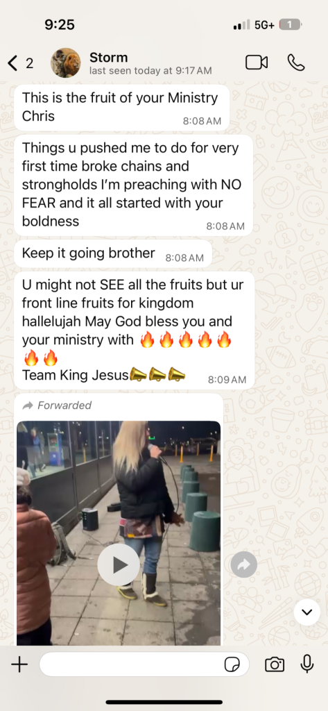 One night back in the fall of 2024 we met a group of young men who had come over to listen to me preach for about 15 minutes. I spoke and prayed with them afterwards and connected with them on Instagram. In the summer of 2025, one of the young men sent me this on Instagram: