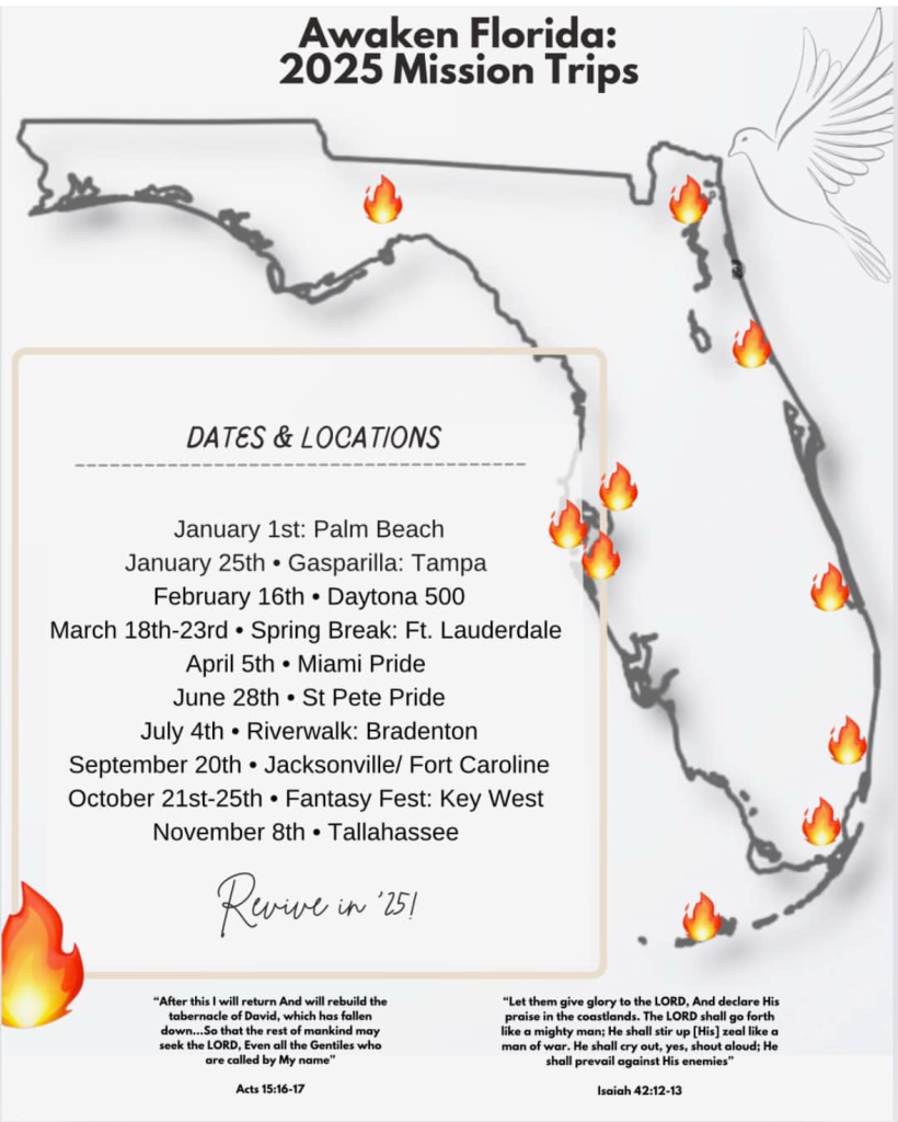 Mission trips to Gasparilla, Spring Break, Miami Pride, St Pete Pride and Fantasy Fest