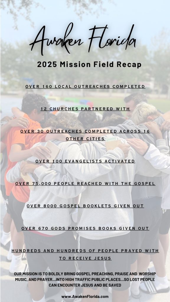 For example- in 2025 we did evangelism in more cities outside the 941 than ever before (16 cities across 4 states), we took more missionaries with us than ever before (over 100), and we partnered with more churches than ever before (9 local and 3 across the state).