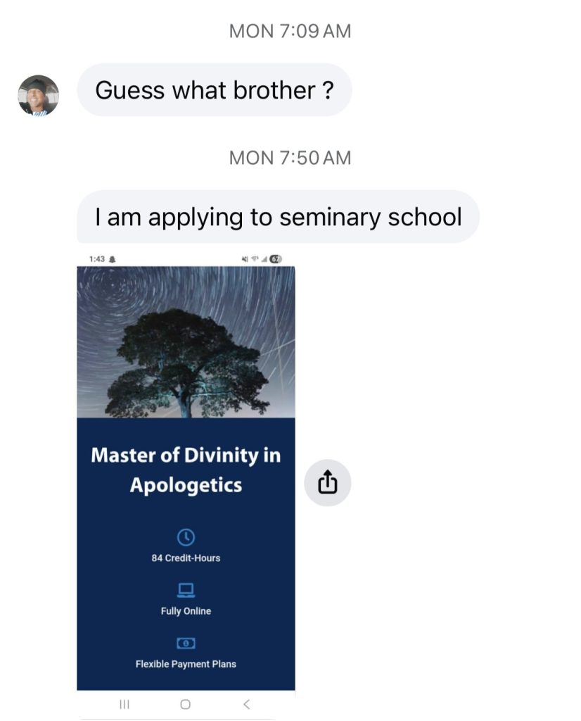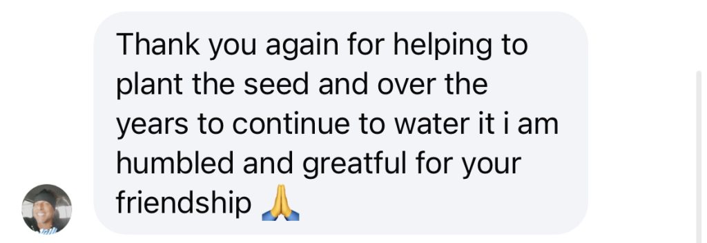 And so cool that this past week I got this message from a man who we’ve ministered to a number of times at Bayfront Park. He was super lost when we met him but he’s been getting closer and closer with God over the years. Now he wants to go to seminary!