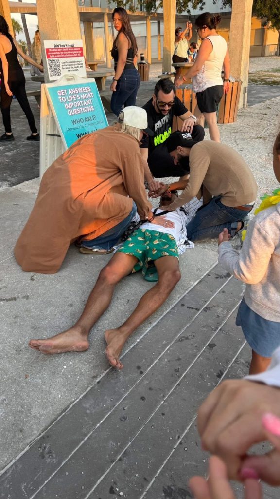 Bayfront Park was great too. Lots of traffic and several people getting ministered to. We even met this young man who goes to State College of Florida, who actually remembered me coming there to preach several years ago. How wild! We ministered to him for a while.