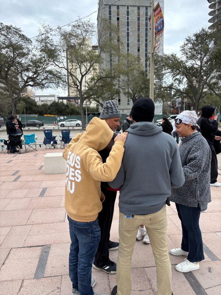 We had been there 3 years in a row, and this was definitely the coldest it’s ever been. The wind was fierce too, blowing our sign, table and cross over multiple times. It also started to rain at one point, forcing us to pack up a little early.