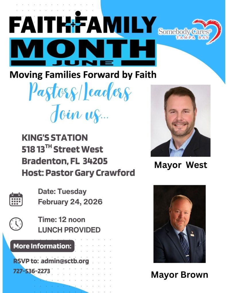 It’s been another exciting week. Among other things, one big highlight was our Faith and Family Month meeting this past Tuesday, which was attended by Mayor West of Palmetto and Mayor Brown of Bradenton.