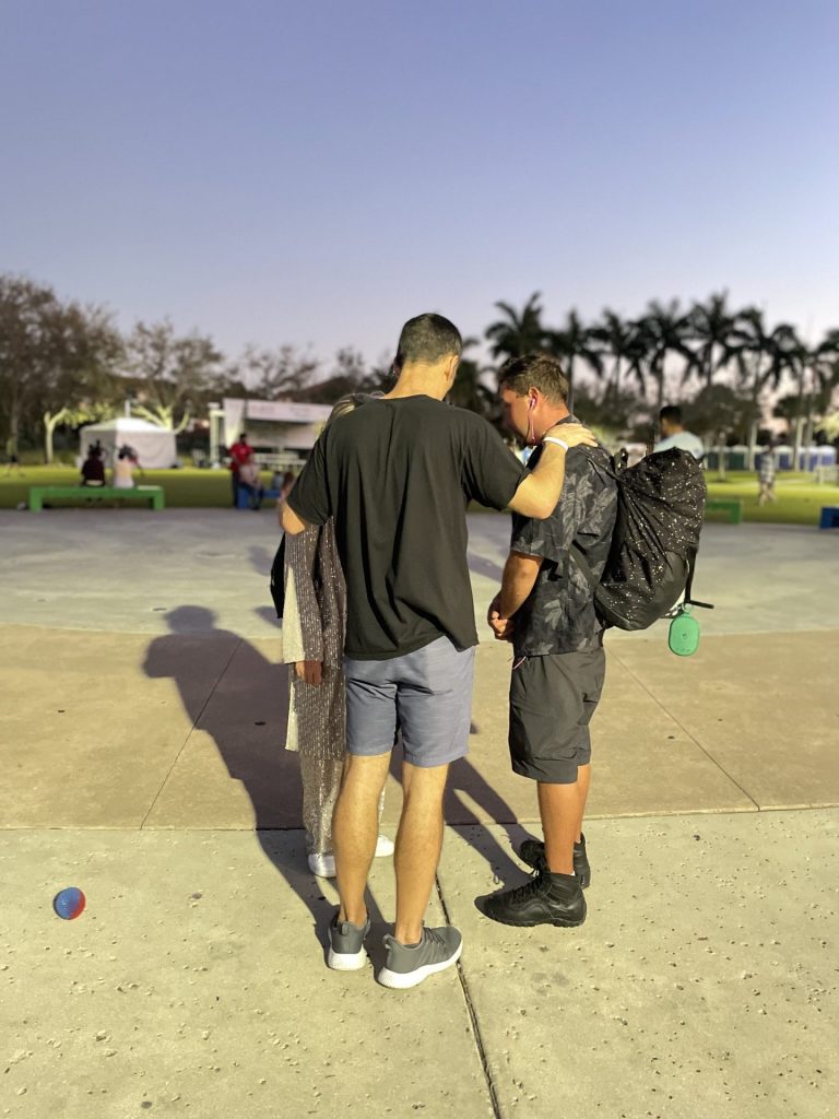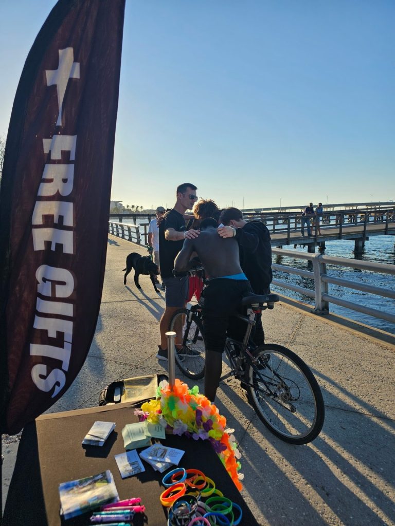 The next day, it was VERY cold and VERY windy at Siesta, but there was still a decent crowd in the pavilion for the drum circle. We set up by the entrance and had some good interactions with people. We gave out a good amount of tracts and had some good conversations.