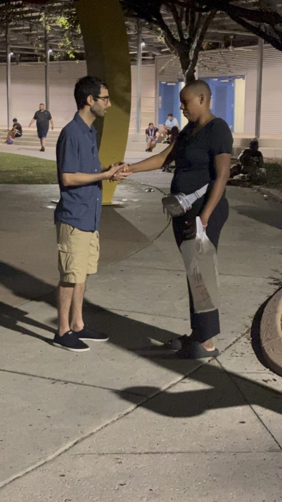 Saturday, the weather was beautiful, and there were lots of people at Riverwalk for the boat races. We posted up in a few unusual spots and many people came over. We also had our friend Karina with us leading worship, and our friend Calvin who brought the Jesus raps. It was so great to have them. Here’s a few clips: